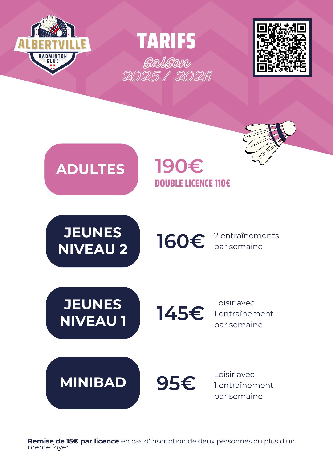 Voici les tarifs de la saison 2025/2026 :